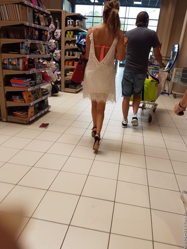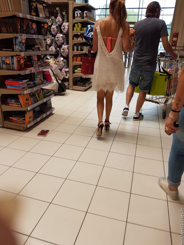 Talons aiguilles et maillot de bain sous sa "robe", une belle petite allumeuse, j'adore